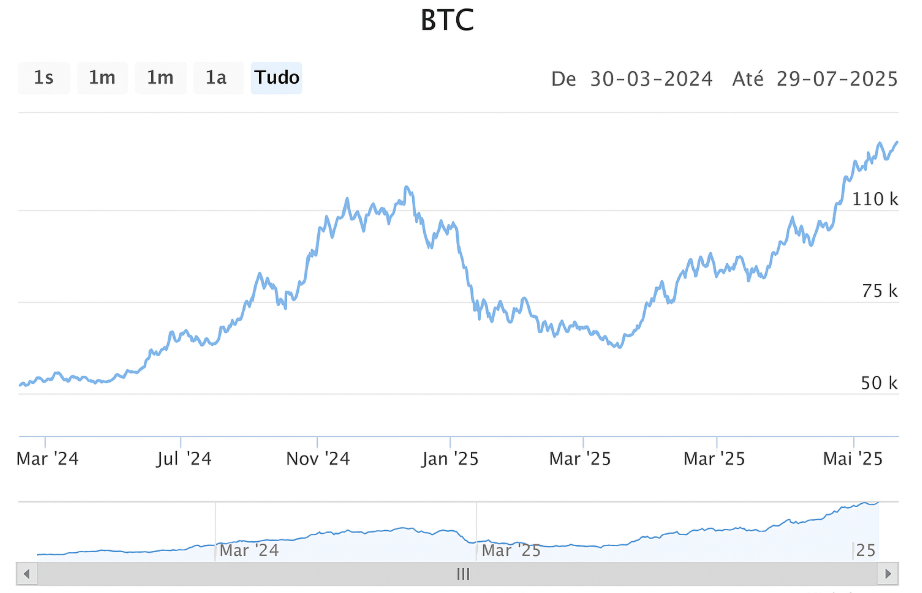 Se você tivesse investido R$ 1.000 em Bitcoin no início de 2024, hoje, em 2025, você teria cerca de R$ 2.000.